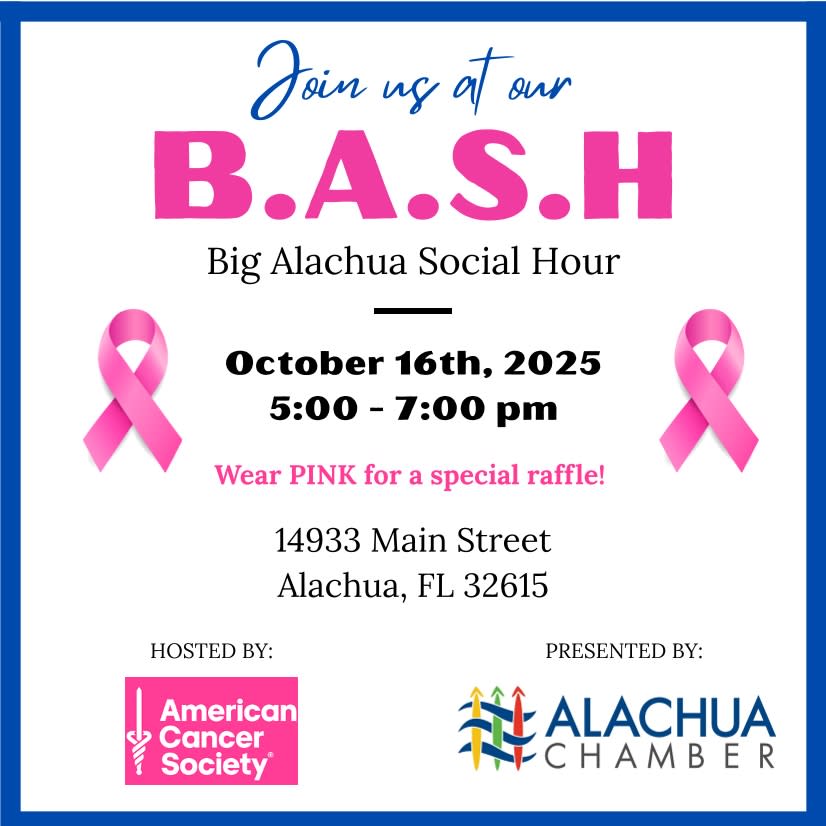 The Big Alachua Social Hours (B.A.S.H.) is a monthly networking and business development after-hours event. Held every third Thursday of the month at rotating business locations. The event is a drop-in and drop-out format, so feel free to come and go as you please. Learn about the host business operations and network with fellow business and community leaders.Images