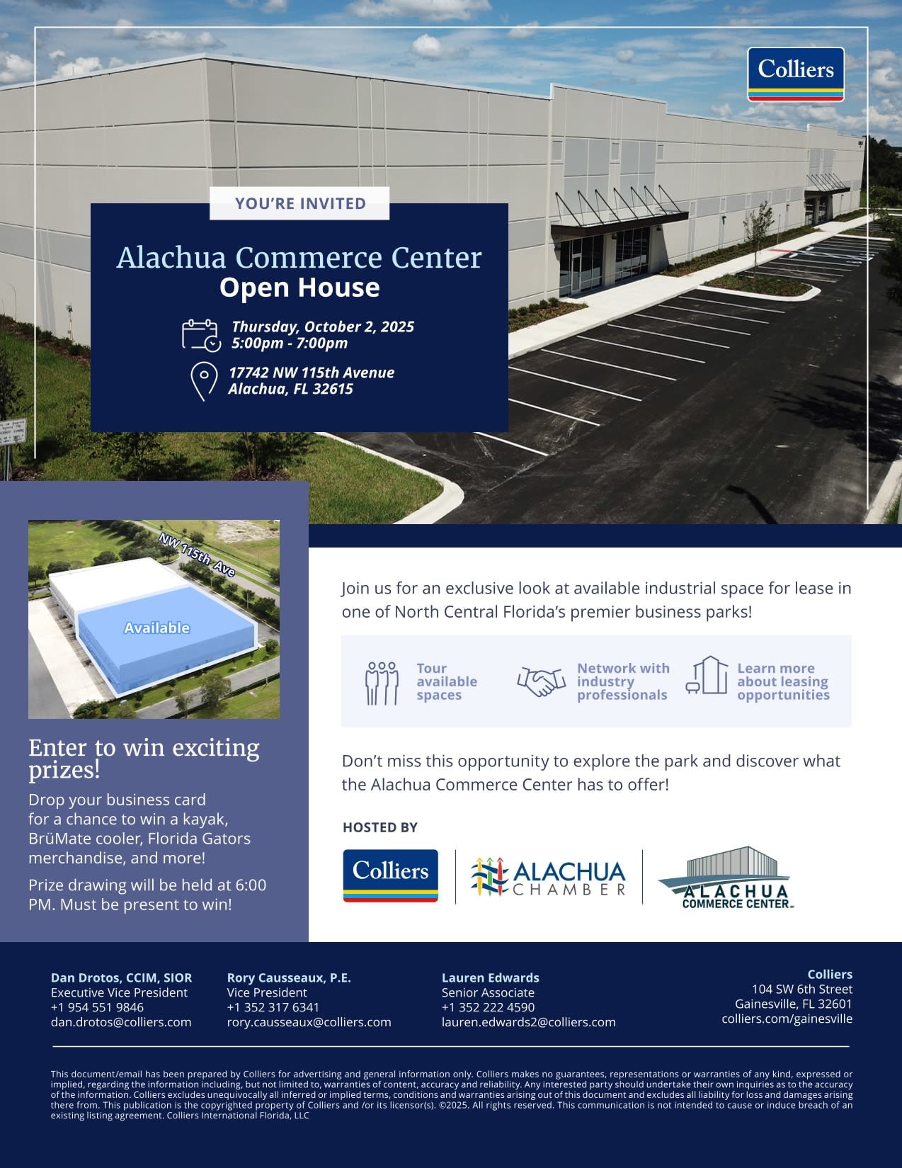 Join us for an exclusive look at available industrial space for lease in one of North Central Florida's premier business parks!